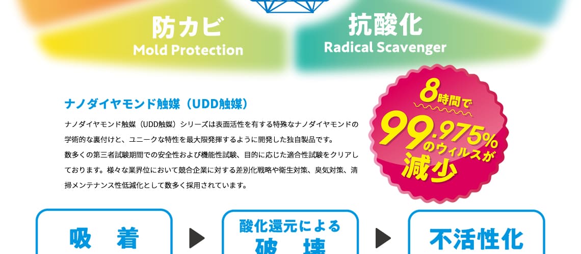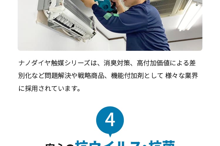 ナノレベルだから実現できる、持続力のある除菌、抗菌、消臭ソリューションで「気持ちいい生活空間」がはじまる。